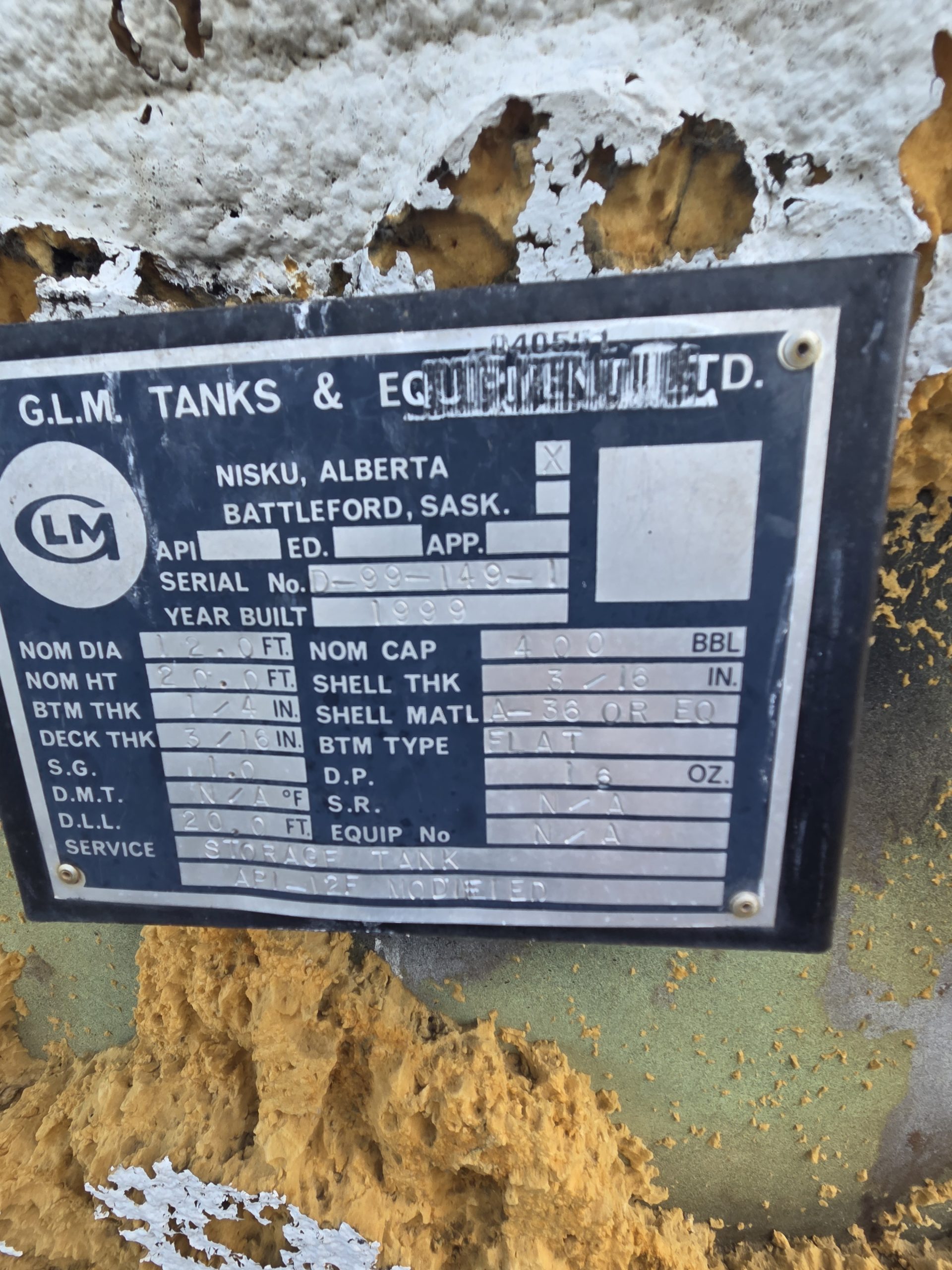 Tank Serial #D-99-149-1